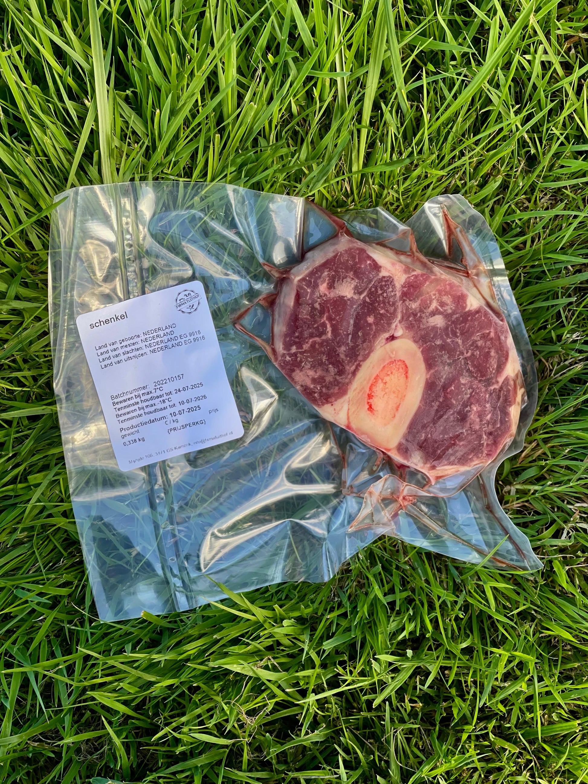 Onze verse runderschenkel is een echte klassieker in de traditionele keuken. Dit stuk rundvlees, afkomstig van de poot van het rund, bevat zowel mager vlees als een rijk stuk merg in het bot. Voor een diepe, volle smaak in soepen of stoofpotten. Deze runderschenkel is vacuüm verpakt.